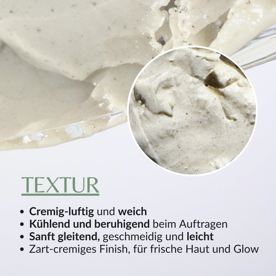 Diese luxuriöse Leave-On-Maske hat eine intensive Pflegeformel, die tief in die Haut eindringt, sie nachhaltig beruhigt, hydratisiert und regeneriert. Sie stärkt die Hautbarriere und sorgt für ein ausgeglichenes Hautbild mit natürlichem Glow – ganz ohne Abwaschen.